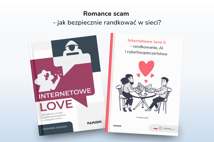 „Internetowe love. Jak zadbać o swoje cyberbezpieczeństwo w relacjach online” – ten poradnik krok po kroku tłumaczy, czym są oszustwa na „amerykańskiego żołnierza”, sextortion, revenge porn i inne oszustwa typu romance scam. Zawiera praktyczne porady techniczne i psychologiczne, a także wskazówki prawne, co zrobić w przypadku podejrzenia oszustwa.